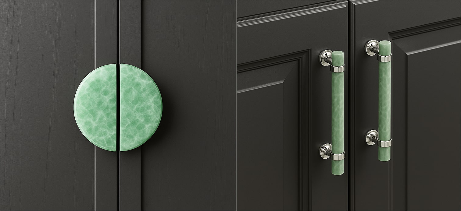Designed to inspire contemporary living, our jade handles and doorknobs pair natural stone beauty with refined craftsmanship. Unique in pattern and glow, every piece enhances doors and cabinets with lasting luxury.